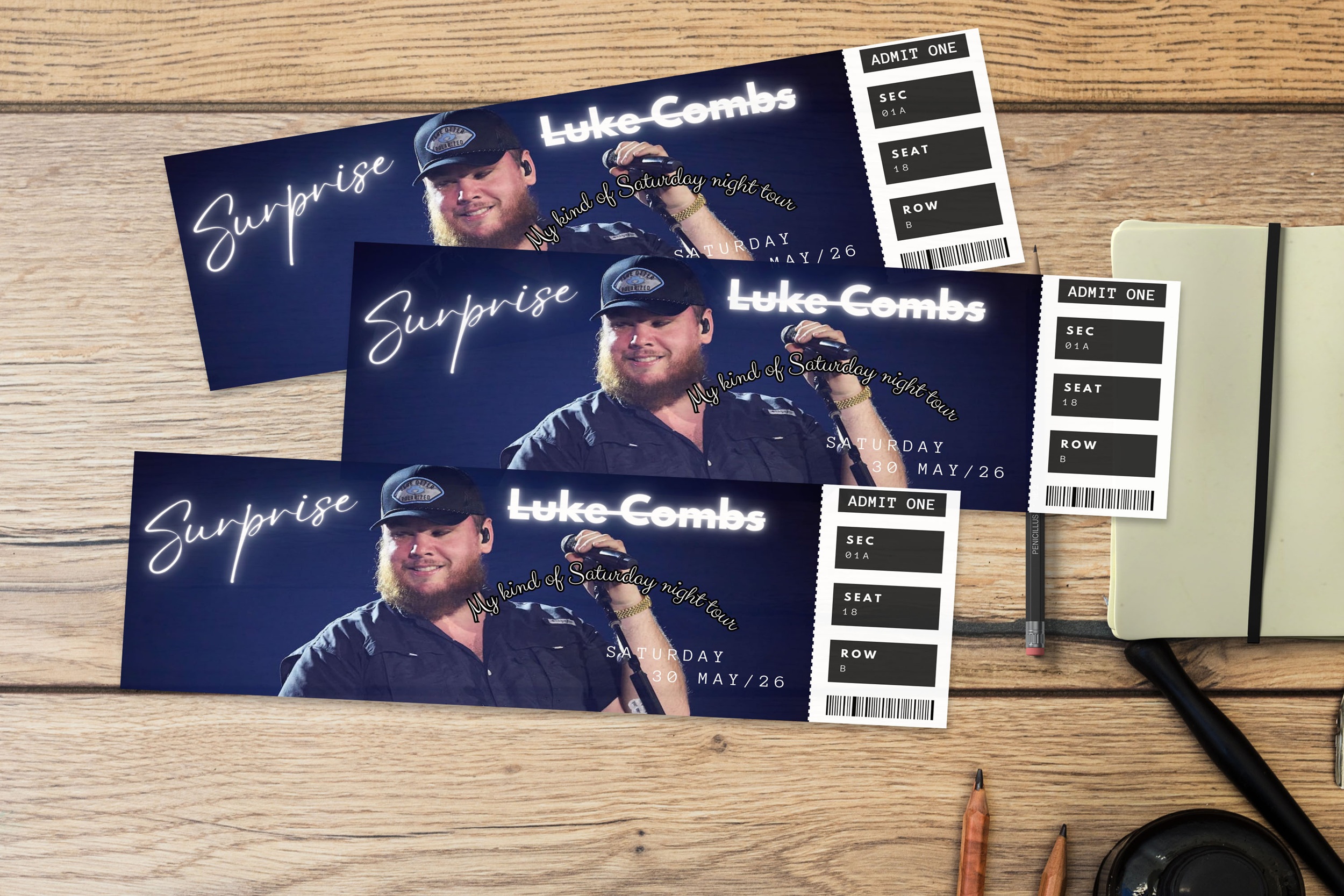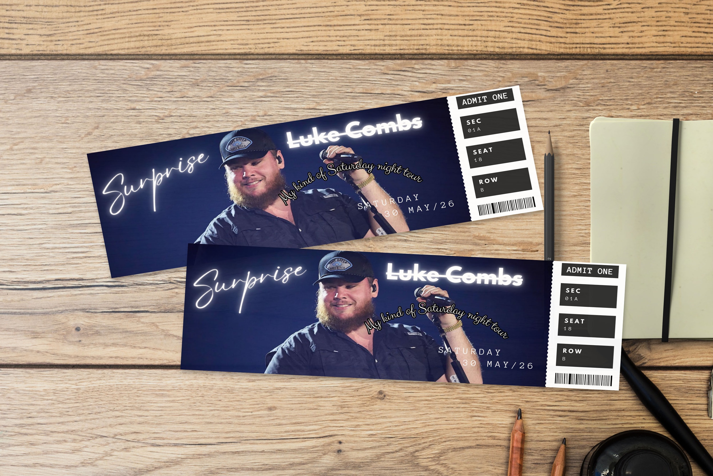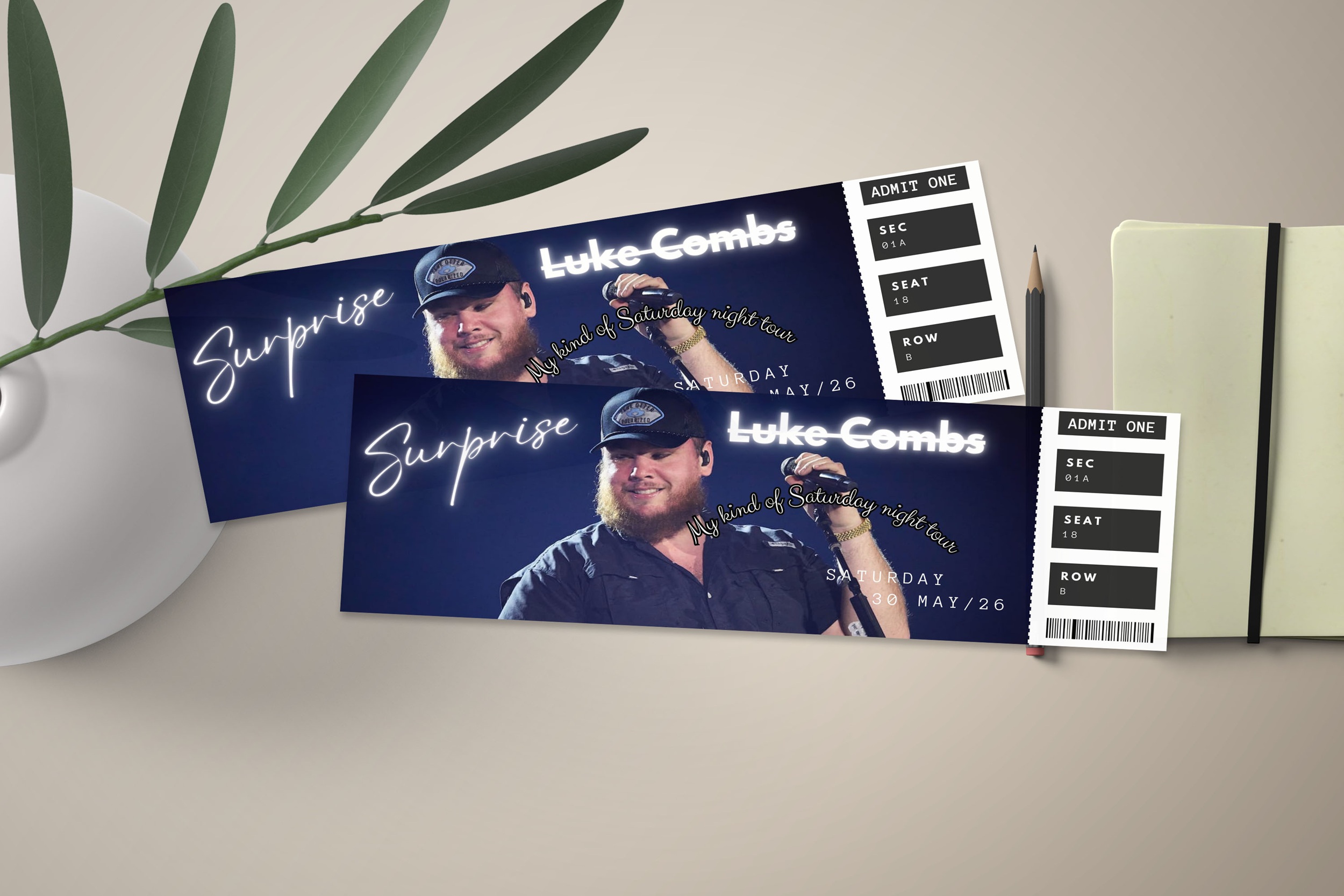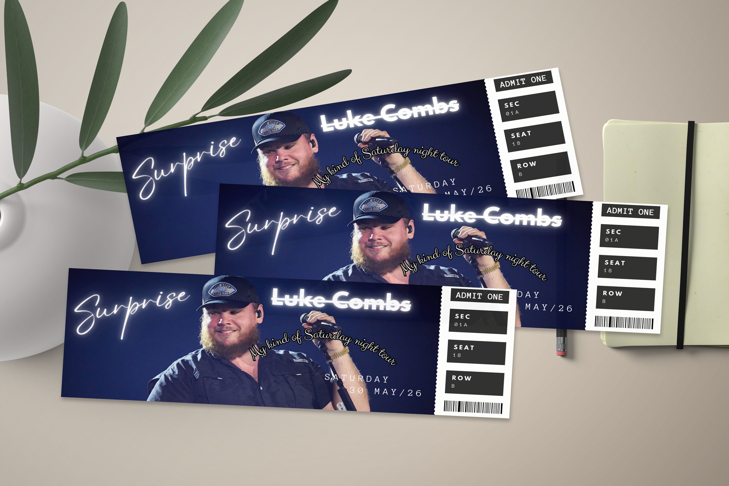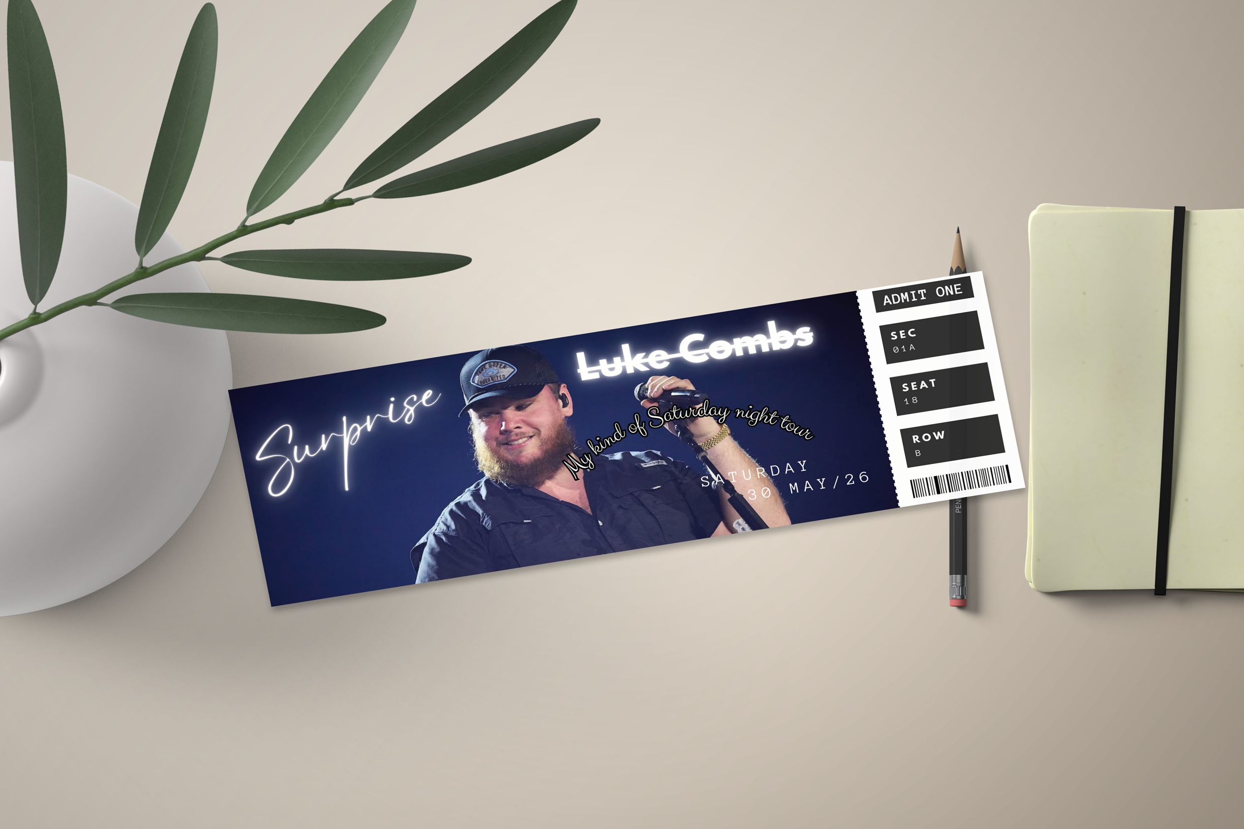 Home Editable Luke Combs Tour Ticket, Tour Ticket, Luke Combs My Kinda Saturday Night Tour, Canva Template, Surprise Gift, Concert ticket
