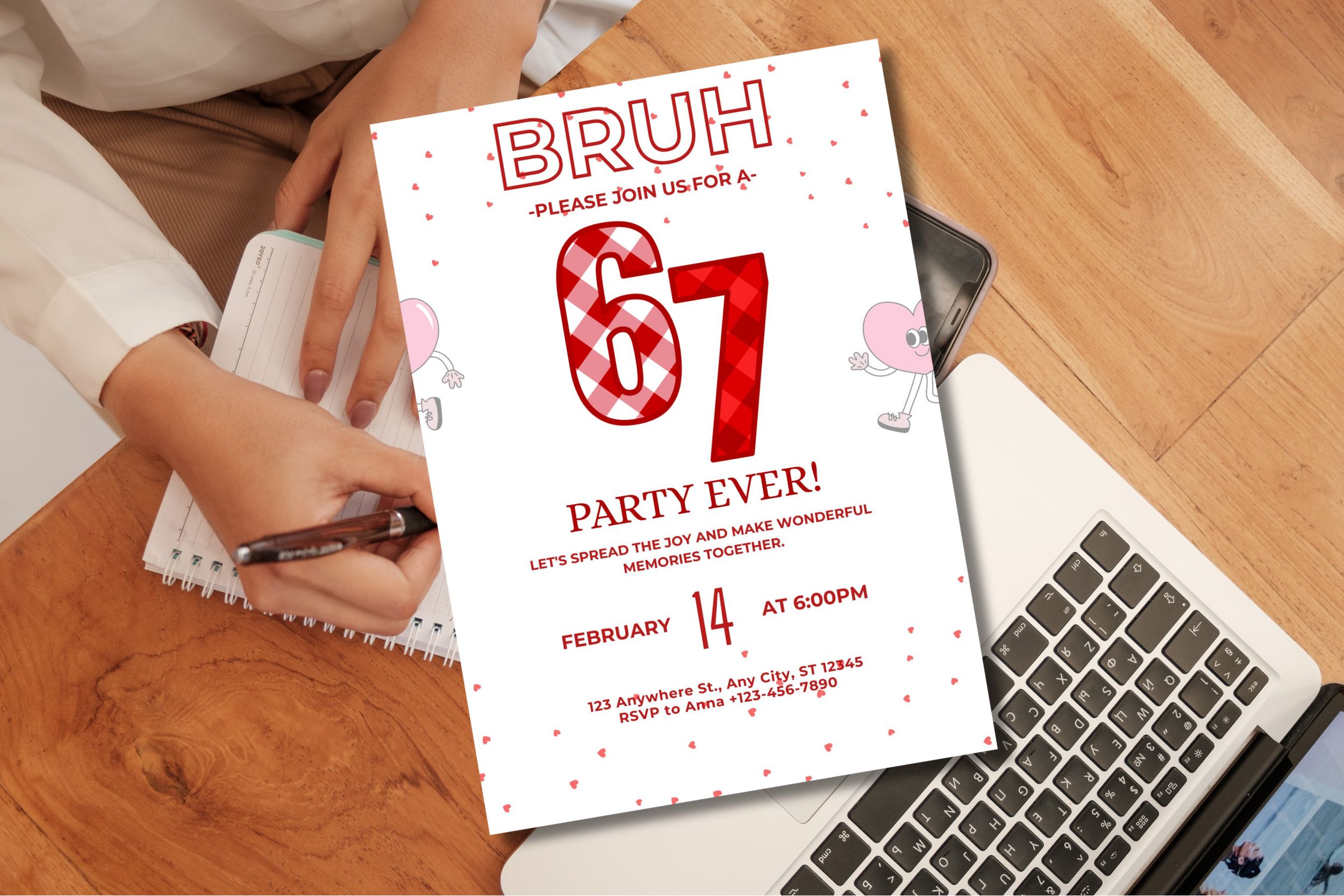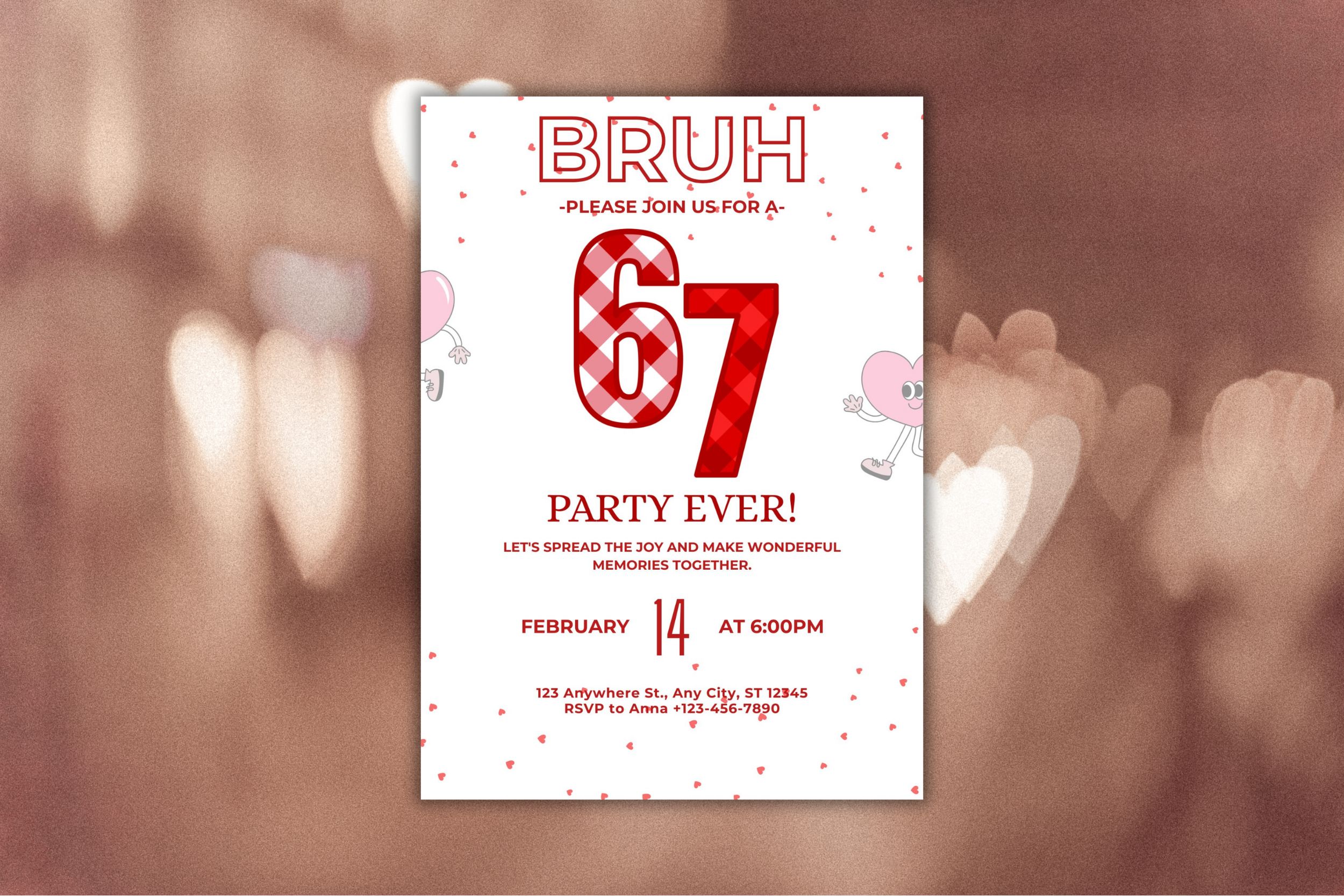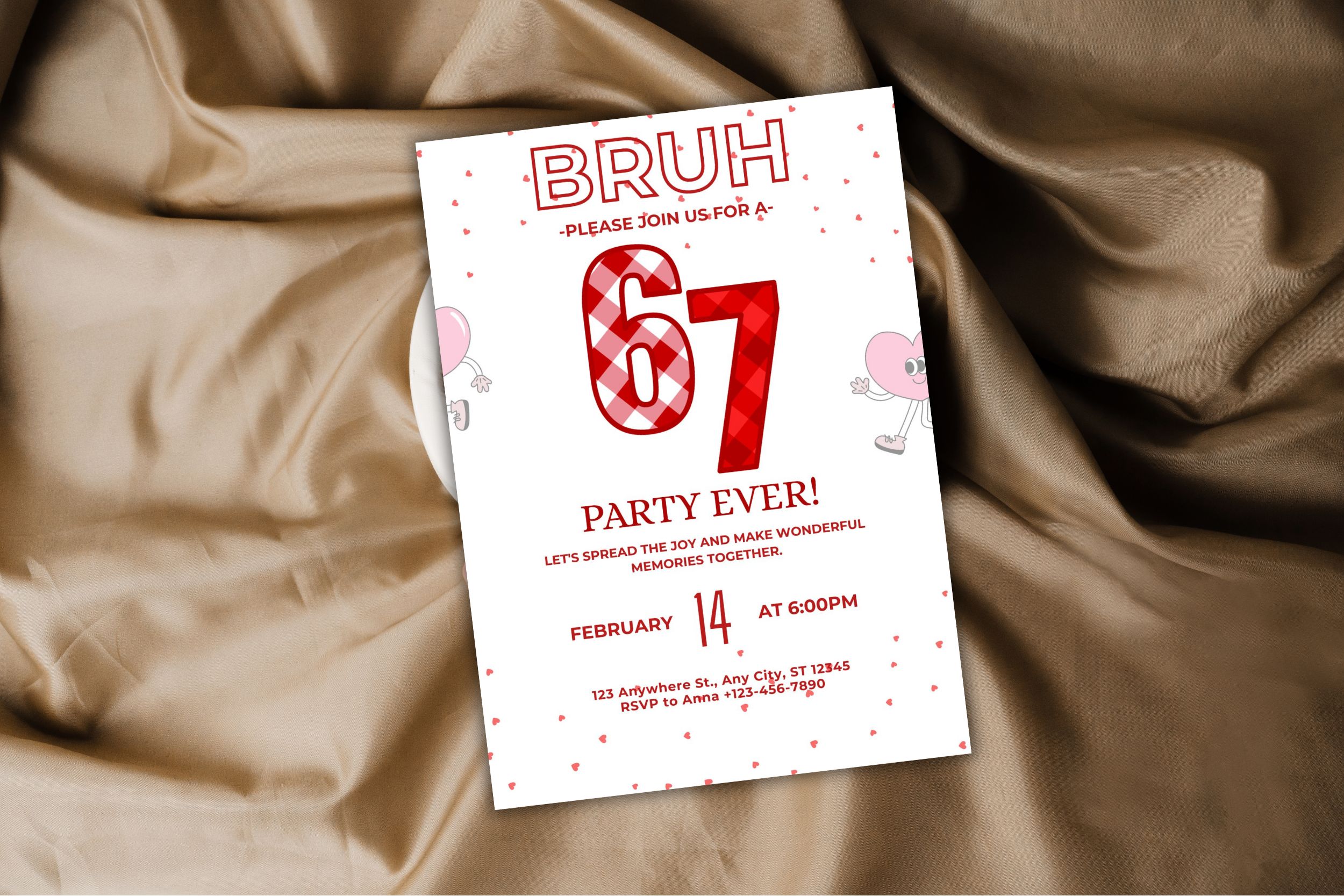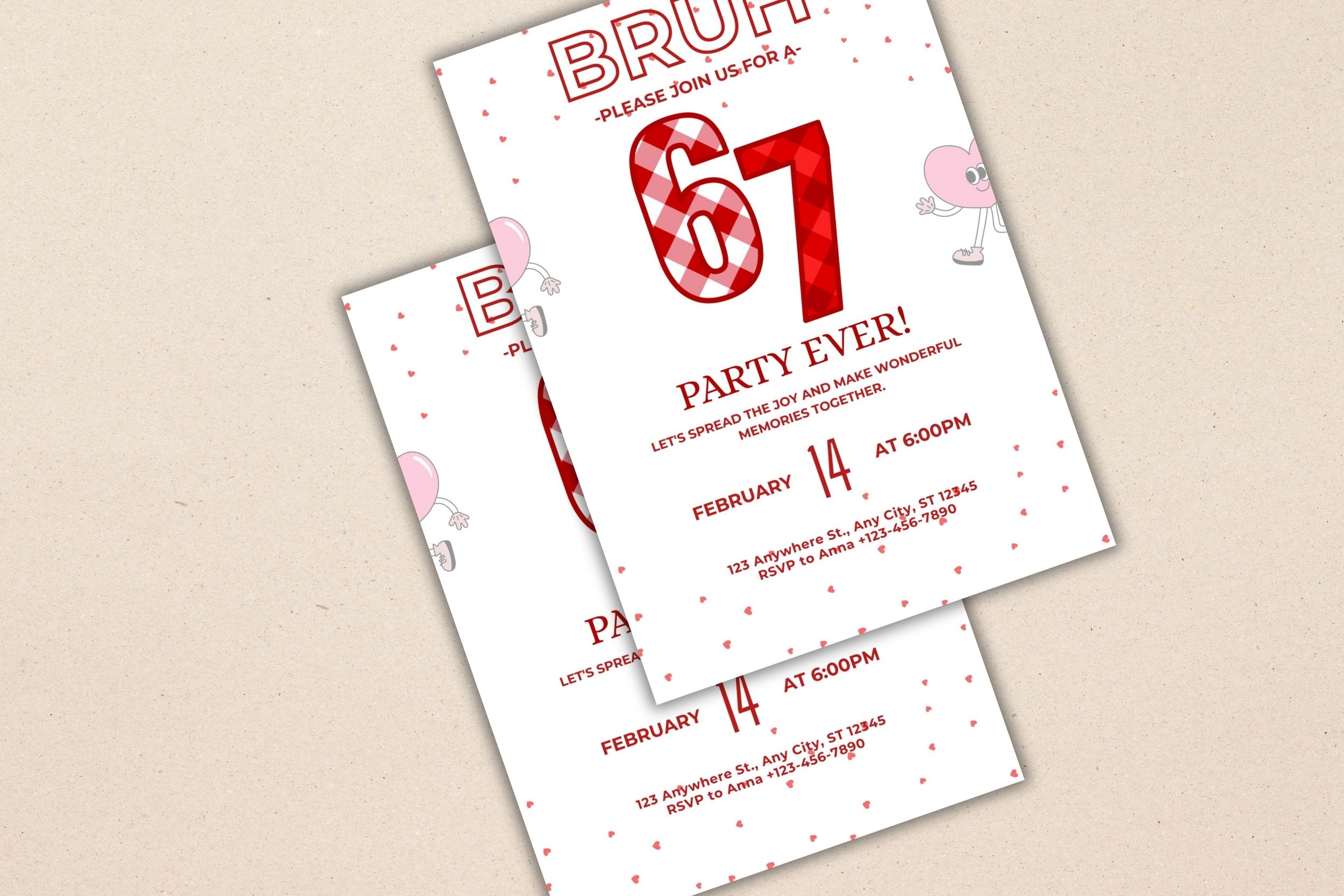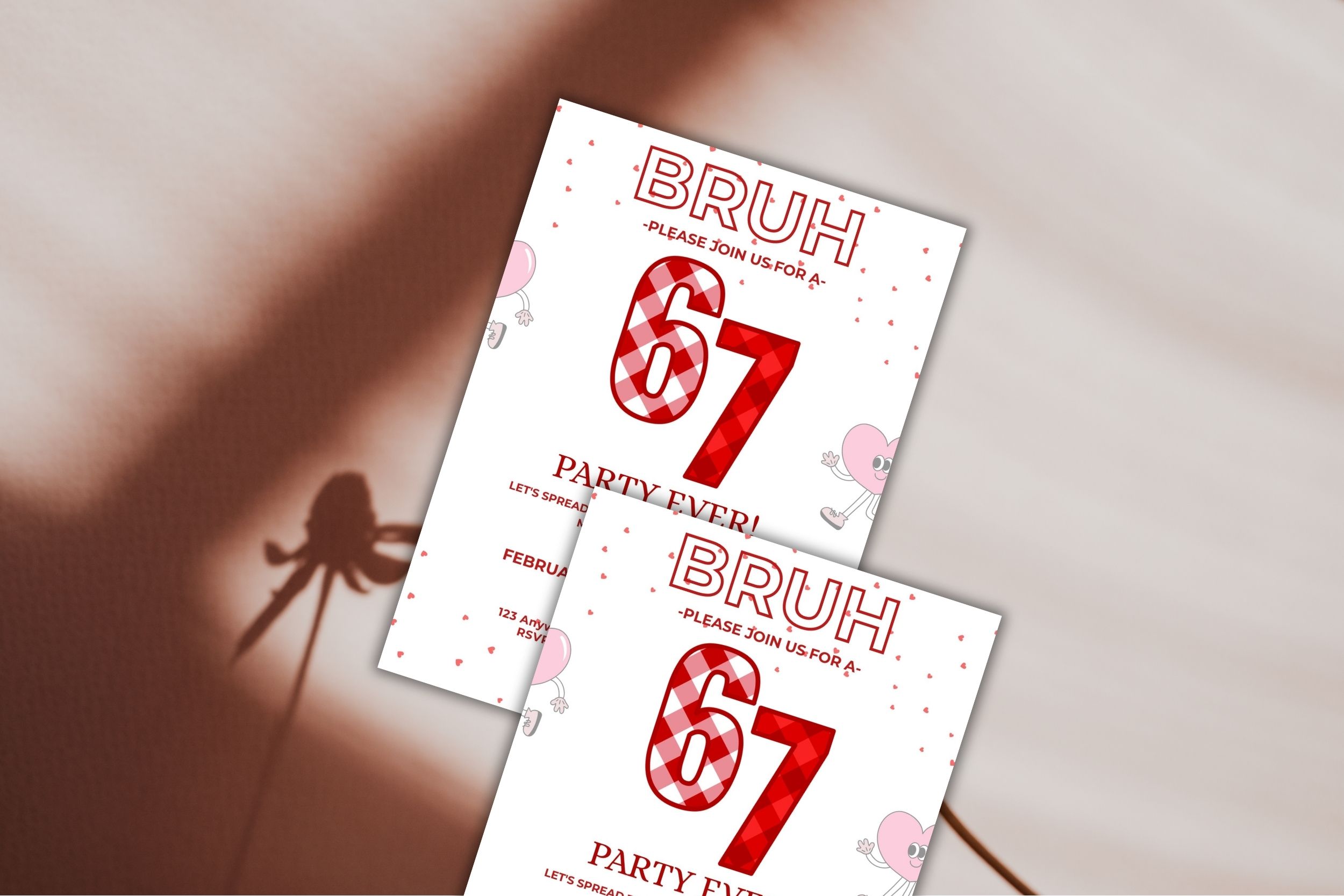 Printable Six Seven Birthday Invitation Card, Bruh 6 7 meme Valentine style Birthday Invitation, Canva Free edit in Any Browser , Digital Download
