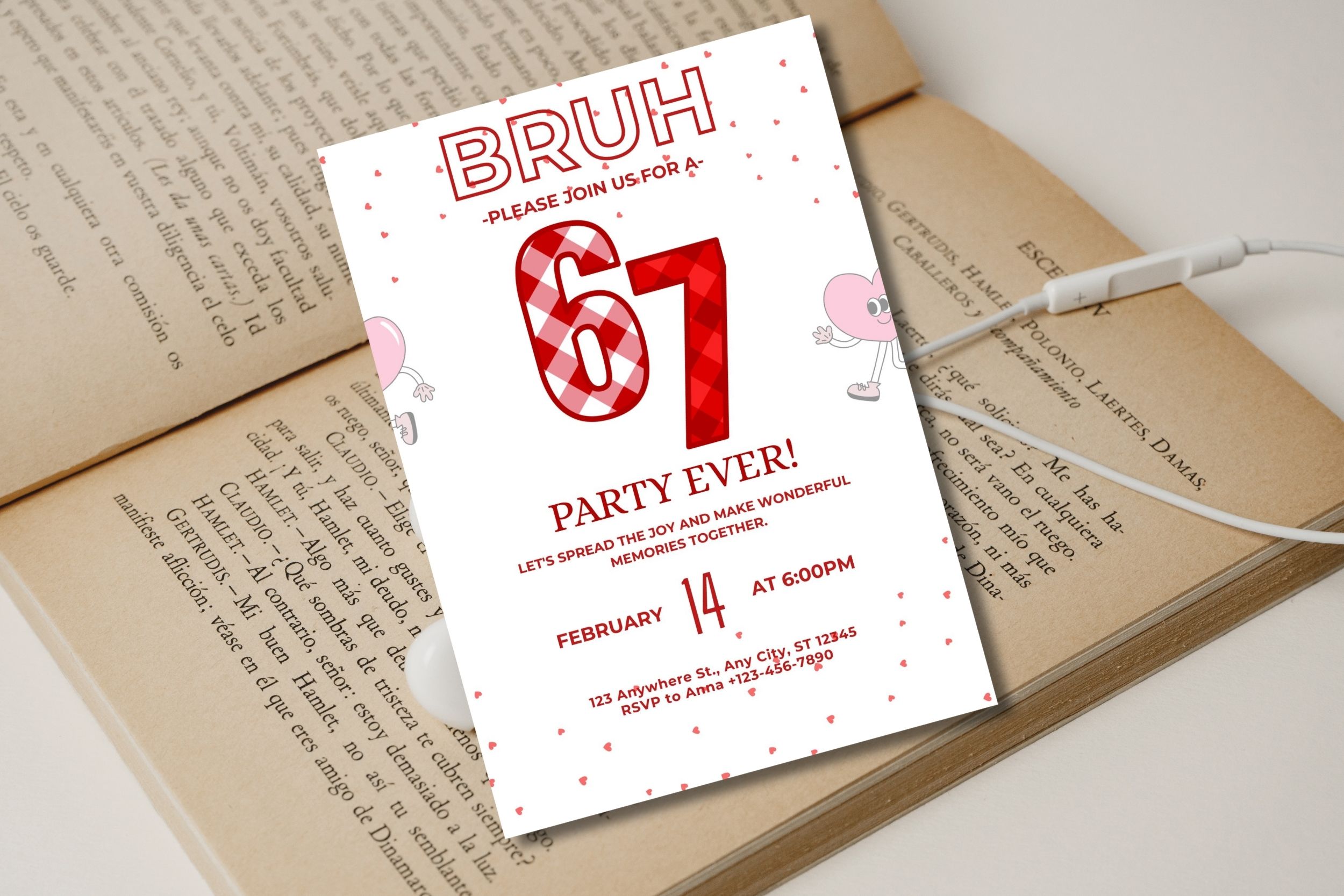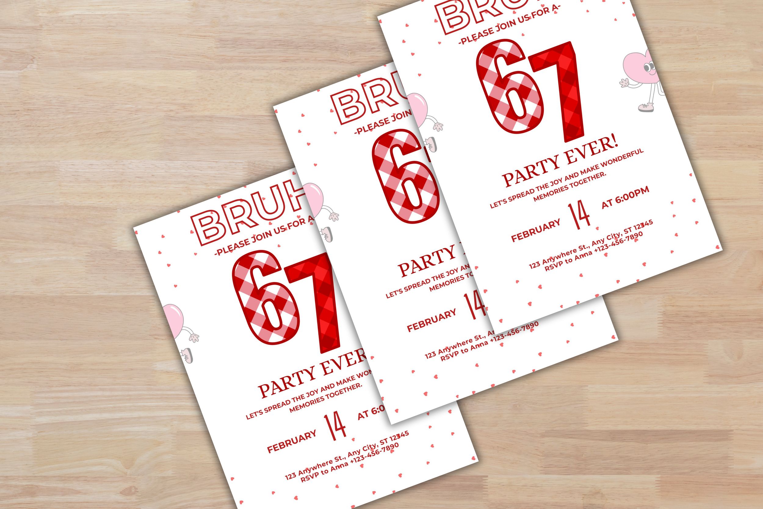 Be the first to review “Printable Six Seven Birthday Invitation Card, Bruh 6 7 meme Valentine style Birthday Invitation, Canva Free edit in Any Browser , Digital Download”